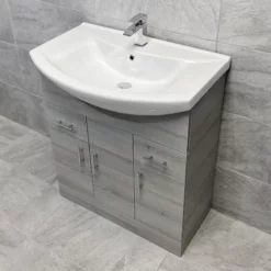 750mm Designer Grey Ash Vanity Basin Sink Bathroom Storage Unit