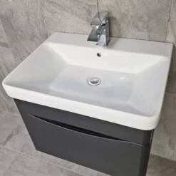 Anthracite Finish Vanity Ceramic Basin Sink Unit 550mm Bathroom Storage