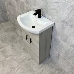 Mediterranean 550mm Grey Ash Vanity Basin Sink Unit With Matt Black Handles