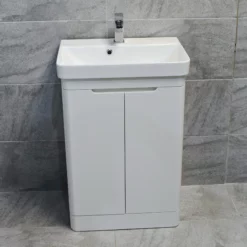 Luna Floor Standing 600mm White Gloss Vanity Unit With Optional Blade Tap