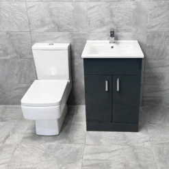 Tess Anthracite Square Vanity Unit Ceramic Basin & Bliss Square Toilet Set
