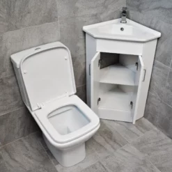 Sindee Rimless Short Projection Toilet & Corner Basin Vanity 2 Door Cloakroom