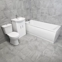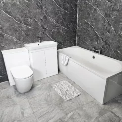 Ross 1050mm White Vanity Square Ended Bath Suite With Black Taps